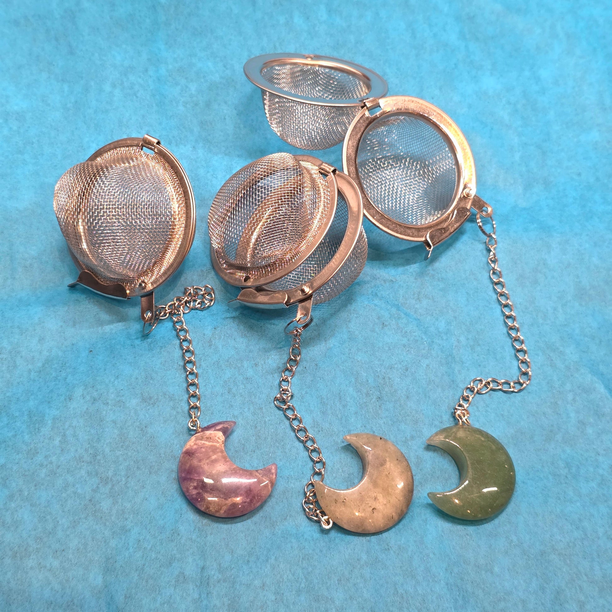 This tea infuser is crafted from premium 304 stainless steel for lasting durability and a pure taste. Enjoy loose leaf tea without the mess. Each infuser comes with a crystal accent, the crystal type varies and will be selected at random based on stock.